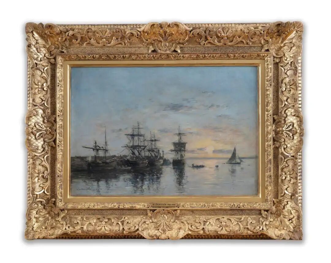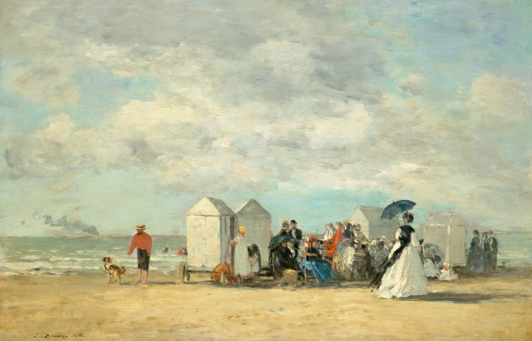 展区汇集 19 世纪末诺曼底沿海旅游海报与布丹等人的悠闲海滨画作,西斯莱 1882 年《圣马姆的洛因》还展现了工业扩张下的沿河日常。