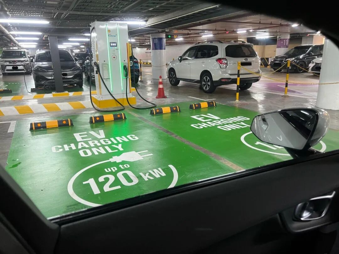 ION Orchard 去年新增电动车充电桩,含 100kW 直流快充与 22kW 交流慢充,果园途中补能便捷,可边购物就餐边为车辆充电。