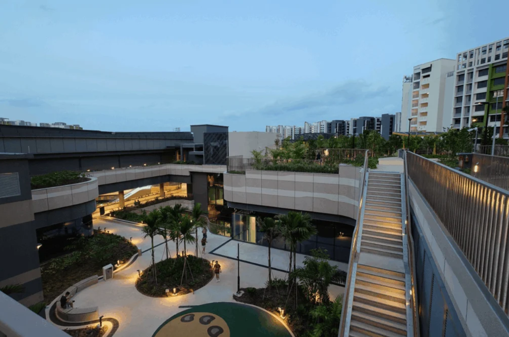 场内大型连锁超市NTUC FairPrice、低价物品商店Valu$以及多家风味餐店,楼顶设有 Wellness Garden,周边还衔接1.5公里自然步道,满足采购与休闲需求。