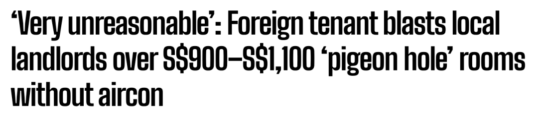 在新加坡看到一些特别小的房间,跟个鸽笼一样的,空调都没有,也不能做饭、没有 Wi-Fi,但房租却要 900 到 1100 新币。