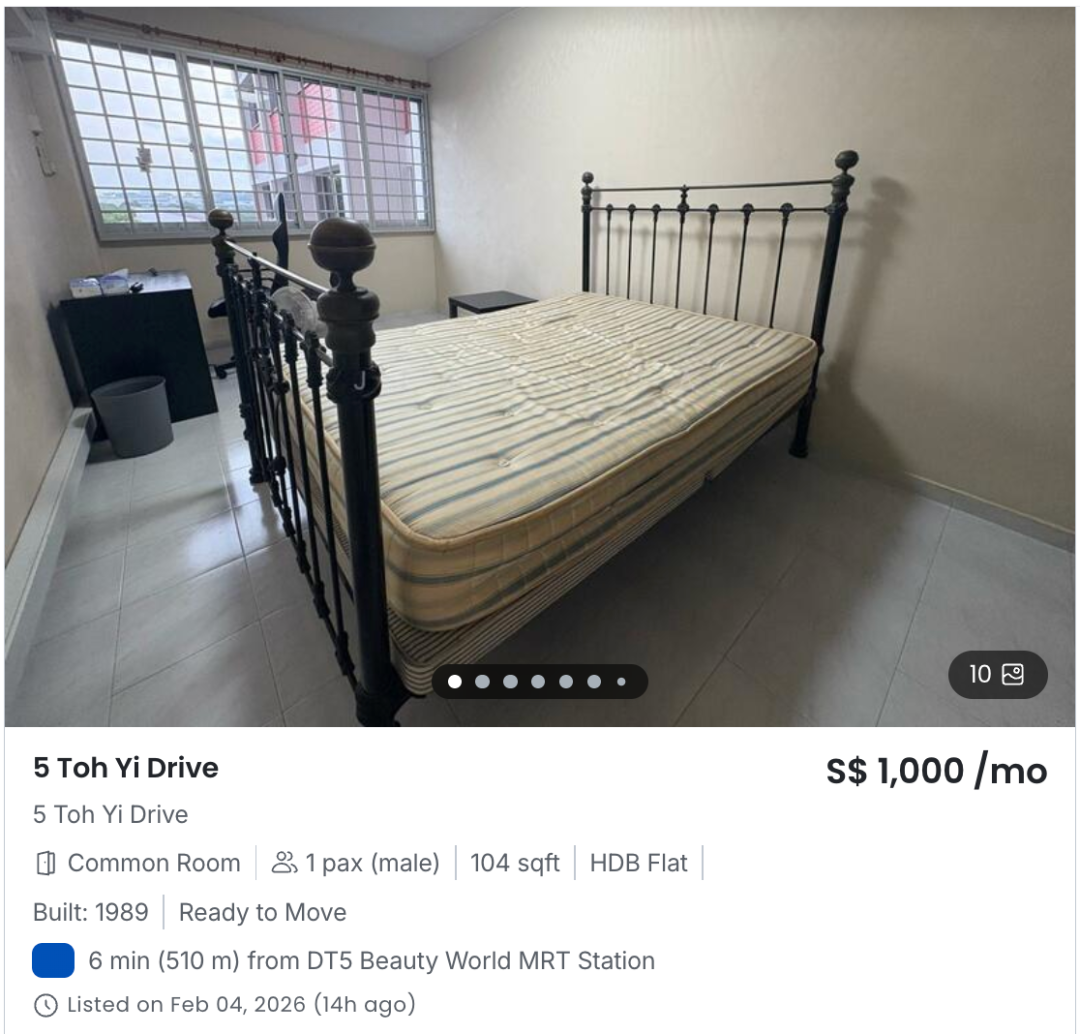 所以你看到小房间接近 1000 新币,并不是个例,而是很多地方的真实价格。