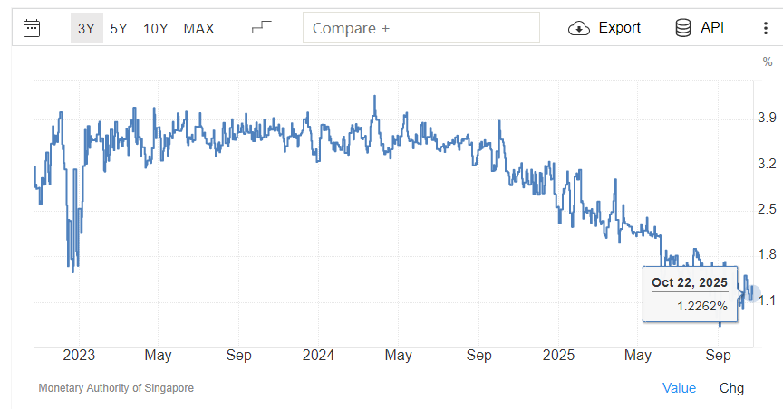 2025年,新加坡的抵押贷款市场最重要的指标——SORA,即新加坡隔夜平均利率,一路下滑。