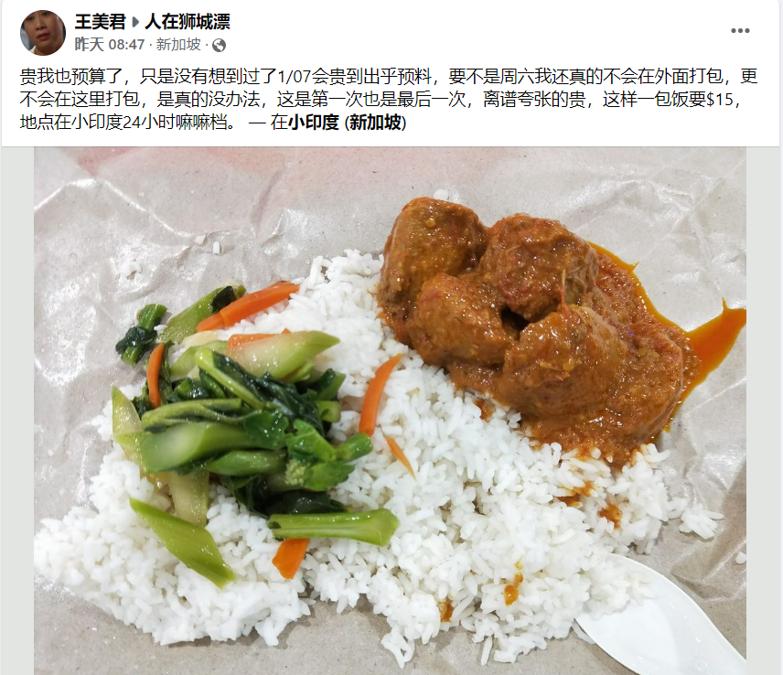 就这一份饭,小贩收了11新元(约合近55人民币)。