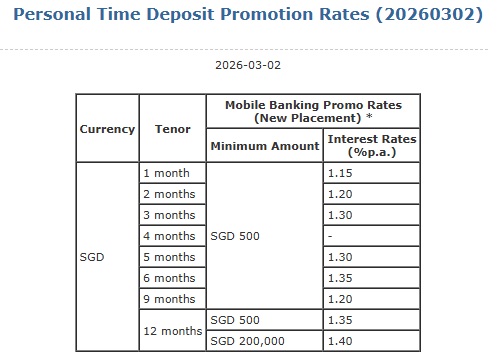 如果是更高端的preferred banking,利率会涨到1.35%。但需要注意,不管哪种存款模式,都需要通过电子银行存款至少1万新币才能享受利率优惠。