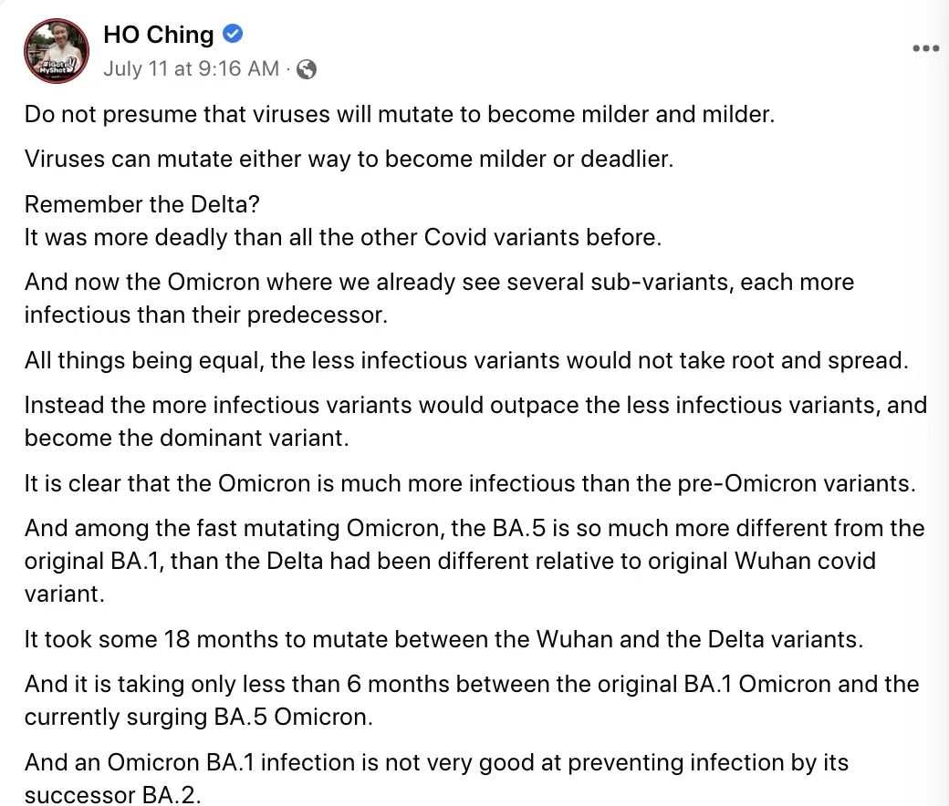 所以,在疯传病毒越变越温和以后......现在又掀起了对病毒不要掉以轻心的舆论风向。