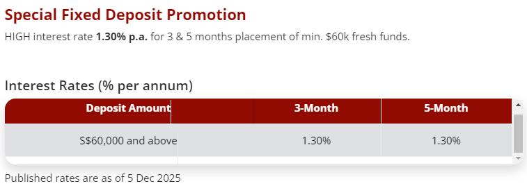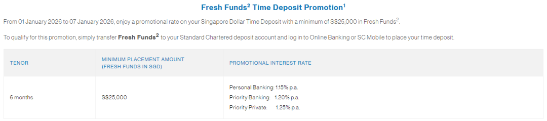 仅限这一周!渣打银行现在提供促销定存利率,存入至少25000新币,6个月优惠利率为1.15%-1.25%!