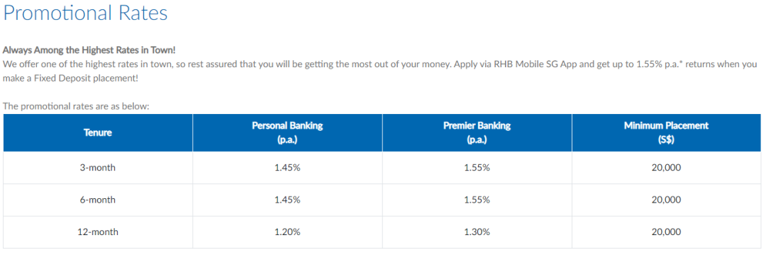 无论是通过电子银行、手机银行或者去柜台办都行,但最低存款额为20000新币,且利息只会在定存期结束后才会一次性支付。