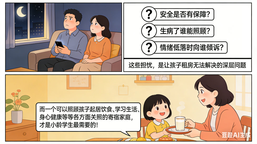 这些担忧,是让孩子租房无法解决的深层问题。而一个可以照顾孩子起居饮食、学习生活、身心健康等等各方面关照的寄宿家庭,才是小龄学生最需要的!