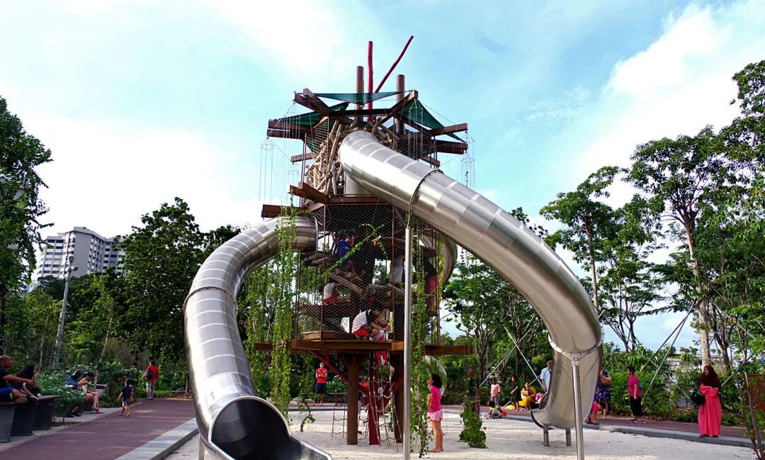 (2)Junior Adventure Trail :具有模拟红树林根系设施为低矮设计,适合 3-10 岁儿童穿梭,全程有护栏,安全系数高,步道旁设有亲子休息区。
