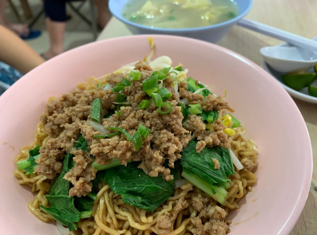 Bakmie Bangka Asan 2323的邦加面用猪肉制作,和常见的鸡肉版本不同。