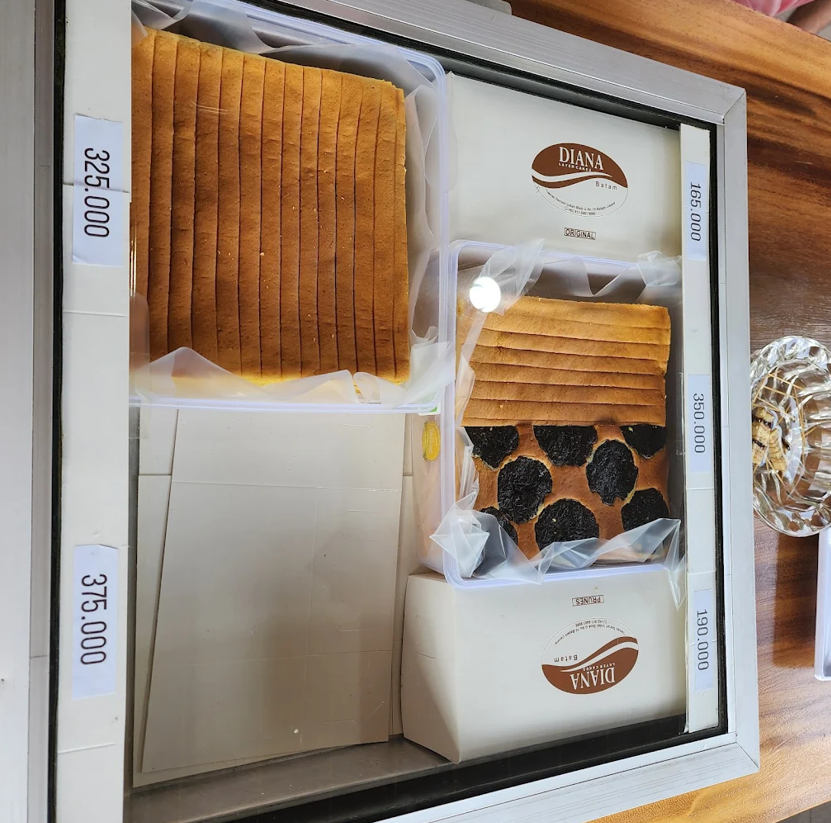 Diana Layer Cakes做这行已经十多年,她们的黄油千层糕,黄油香味够,普通款起步价165,000印尼盾,还有加入西梅的款式,1公斤装的售价325,000印尼盾起。