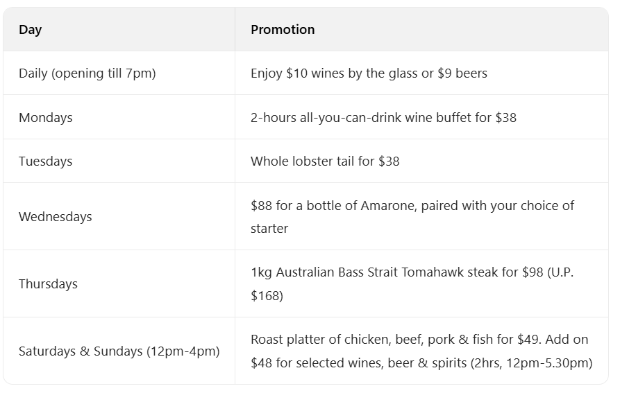 假日季去 Winery Gourmet Bar 开启欧洲美食之旅,新菜单含Trout Tartar with Brioche Toast、Grilled Eel and Striploin ‘Modern’ Paella等精致菜品,还可享每日专属促销,味蕾与实惠兼具。
