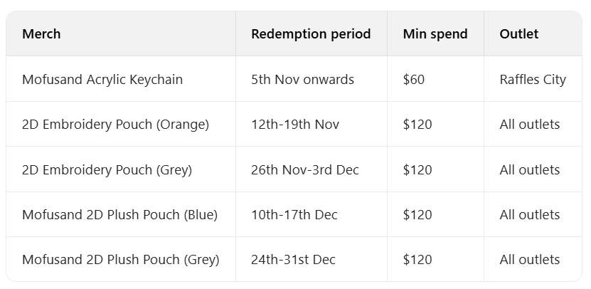 节日季 Mofusand 粉丝可冲莱佛士城寿司亭联名主题店,限时菜单含猫形手鞠山寿司、专属饮品(附主题杯垫),达标低消还能免费领钥匙扣、环保包等限量周边,周三上新库存有限。