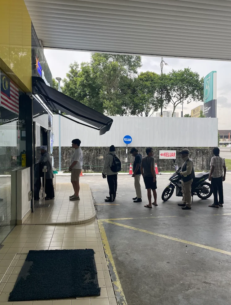 无论自驾或在柔佛租车前往新山,可去 Suria Muhabat Sdn Bhd Petronas Jalan Storey,加油站内可加油兼换币,24 小时营业,距兀兰关卡车程 10 分钟,深夜过境也方便。