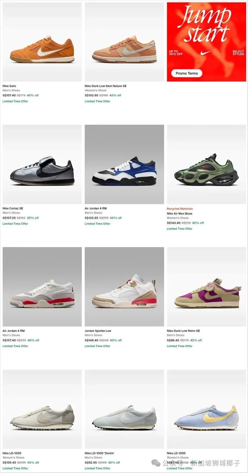 2026 年 2 月 6 日 0 点至 2 月 14 日 23 点 59 分,新加坡 Nike 官网(www.nike.com/sg)推出优惠活动,精选款式低至 55 折,涵盖跑鞋、休闲鞋、运动服饰、配饰等全品类运动及日常穿搭单品,多款热门鞋款享 35%-45% 折扣。