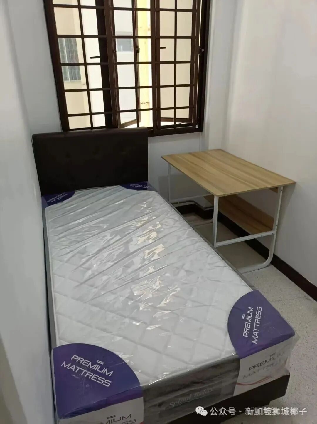 超级单人床、衣柜、书桌、空调、风扇全部备齐,真正拎包入住。