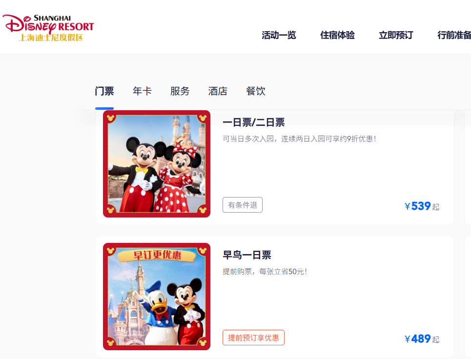 至于香港迪士尼乐园,一日门票分四个级别,价格为699-939港币之间。