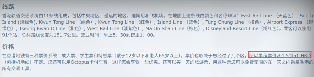 香港地铁在这几个地方中算是最贵的,如果去的地方稍微远一些,可能要50港币!