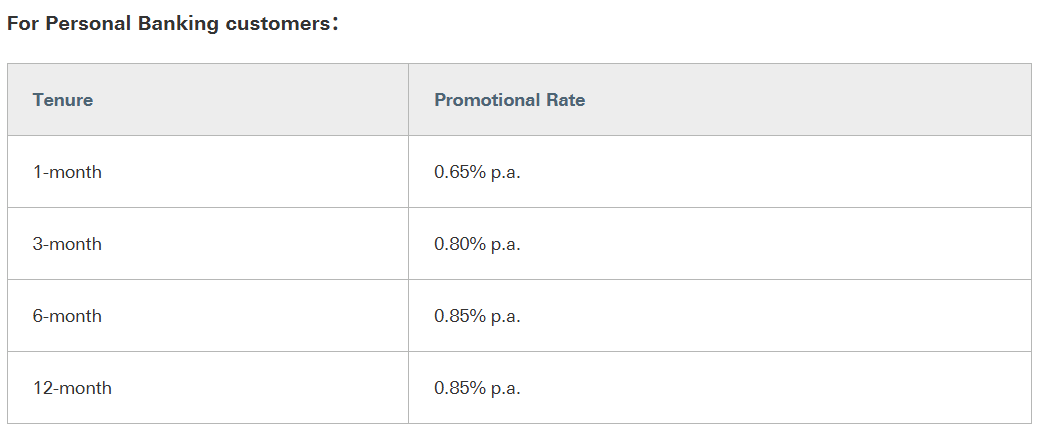 汇丰银行尊享用户,可以享受到3个月1.50%的最佳定存利率。但需要至少存入30000新币,且只能通过手机银行存入!(其他存入方式均无法享受)