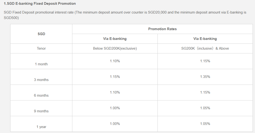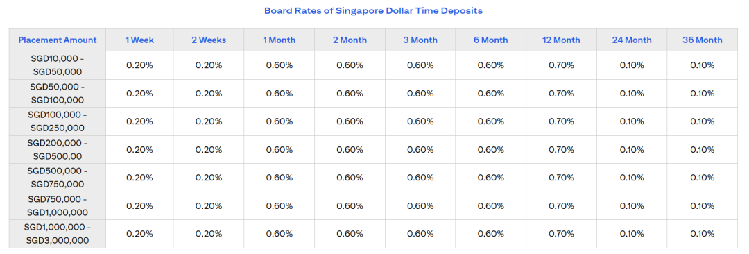 最低存款金额:500新/200000新币(只针对存12个月的选项)