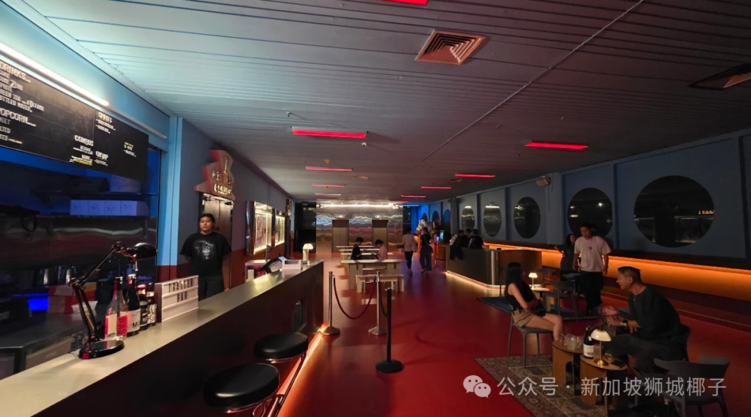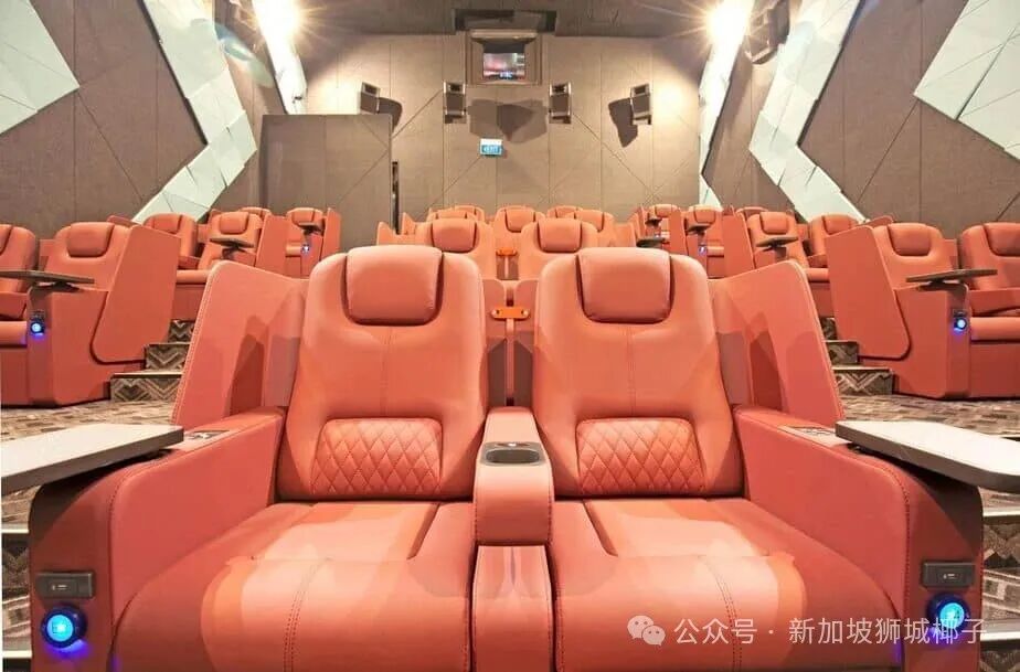工作日票价 25 新元起,影厅里是皮质躺椅,还配有边桌和充电口,门票里还包含 7 新元的零食积分,特别贴心。