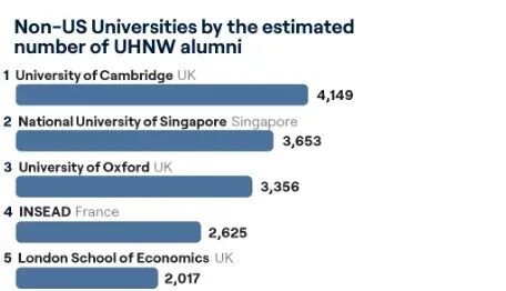去年,美国数据咨询机构Altrata发布了一份全球大学校友亿万富翁非美国大学排行中,新加坡国立大学排名第二(今年的还没出),仅次于剑桥大学。