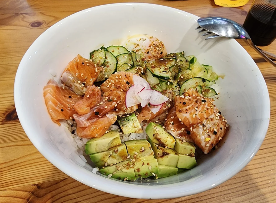 Nami Cafe 藏于创新 4.0 大楼一角,以生鱼片和寿司盖饭闻名,学生对其热门餐品 Nami Signature Bowl(8.80 新元起),配有新鲜三文鱼生鱼片、黄瓜及鳄梨片。