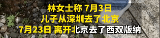林女士说,儿子7月3日去了北京,23日离开北京去了西双版纳,没过几天就联系不上了。
