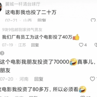 看过电影的网友都表示,自己是“投资人”,小到几千大到几百万!