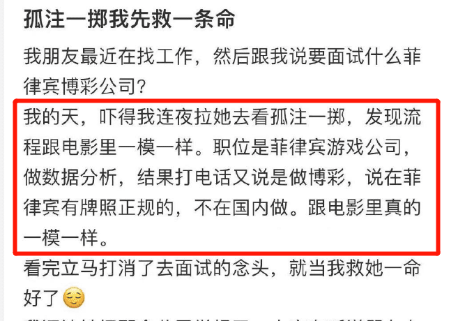 还有网友留言,朋友即将面试的菲律宾游戏公司跟电影里一模一样,赶紧拉她看电影,这才避免她被骗!