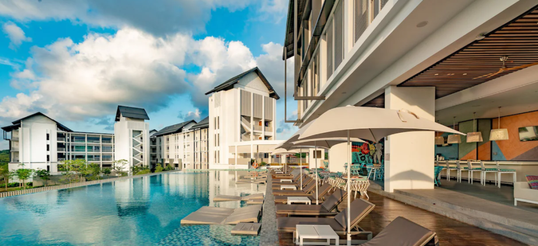 The Westin Desaru Coast Resort 紧邻硬石酒店,是亲子水上冒险乐园出行优选,含 197 新元 / 晚起的热带景观客房,配套私人海滩与草坪泳池。