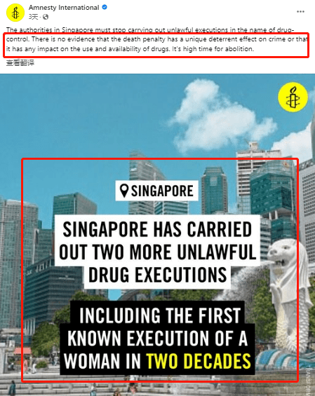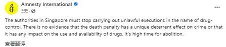 所以,人权组织“大赦国际”发文抨击新加坡必须停止死刑。