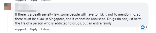 有死刑法的存在都有人冒险去做,更何况是没有(死刑的地方),所以说在新加坡一定要有这项法典的存在不能废除。毒品不只是害了吸毒者一生,而是一个完整的家庭