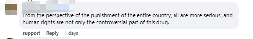 应从整个国家的刑罚制度去看待,有更多方面值得探讨的,而不只是针对毒品这个有争议的部分谈论人权