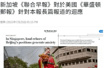 作为被突然列举的媒体例子,《联合早报》隔天便做出了回应,表明美国媒体《华盛顿邮报》评论不实。