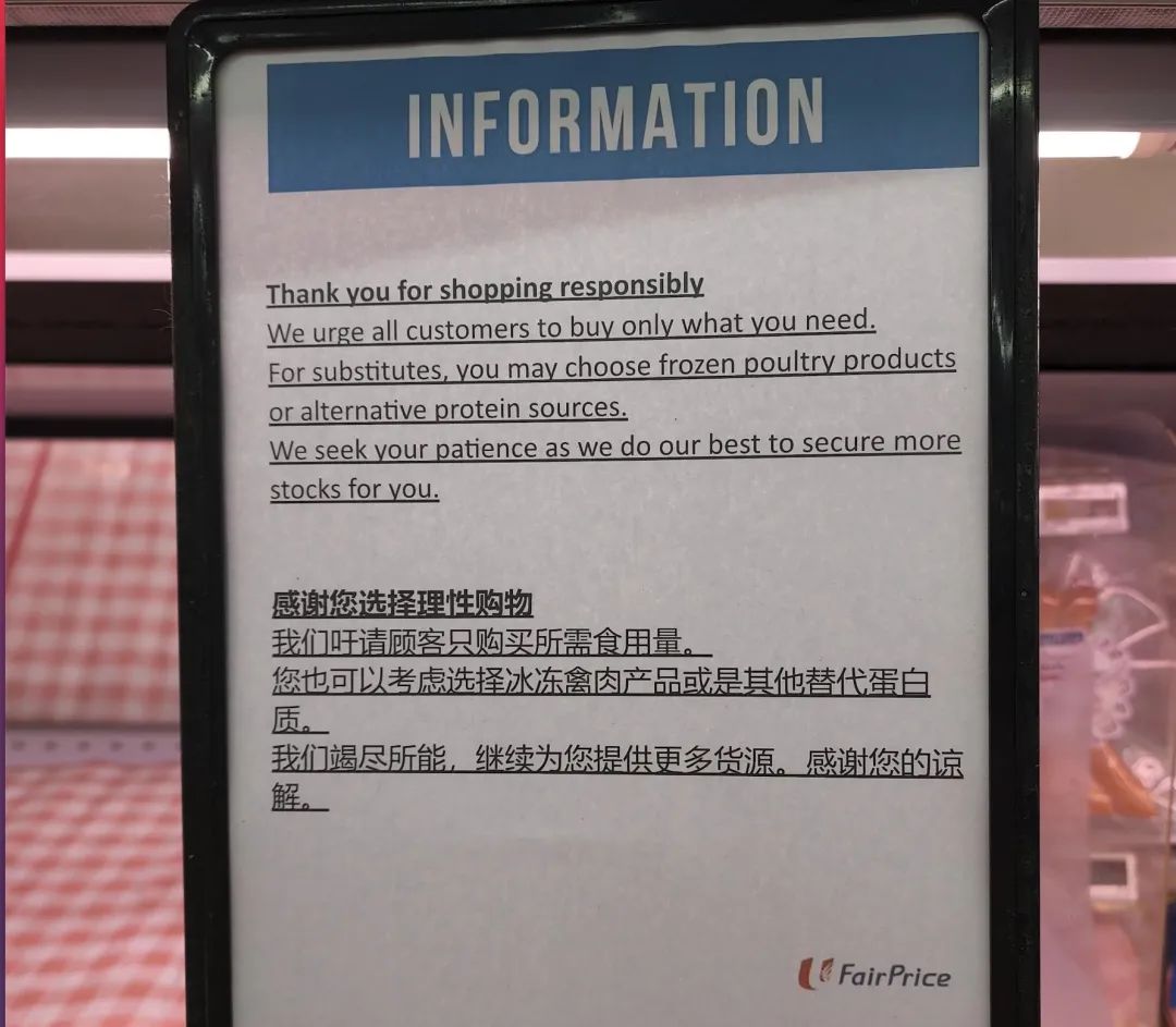 这几天,新加坡人闻风而动,各大超市、巴刹市场的鲜鸡都被抢空了!