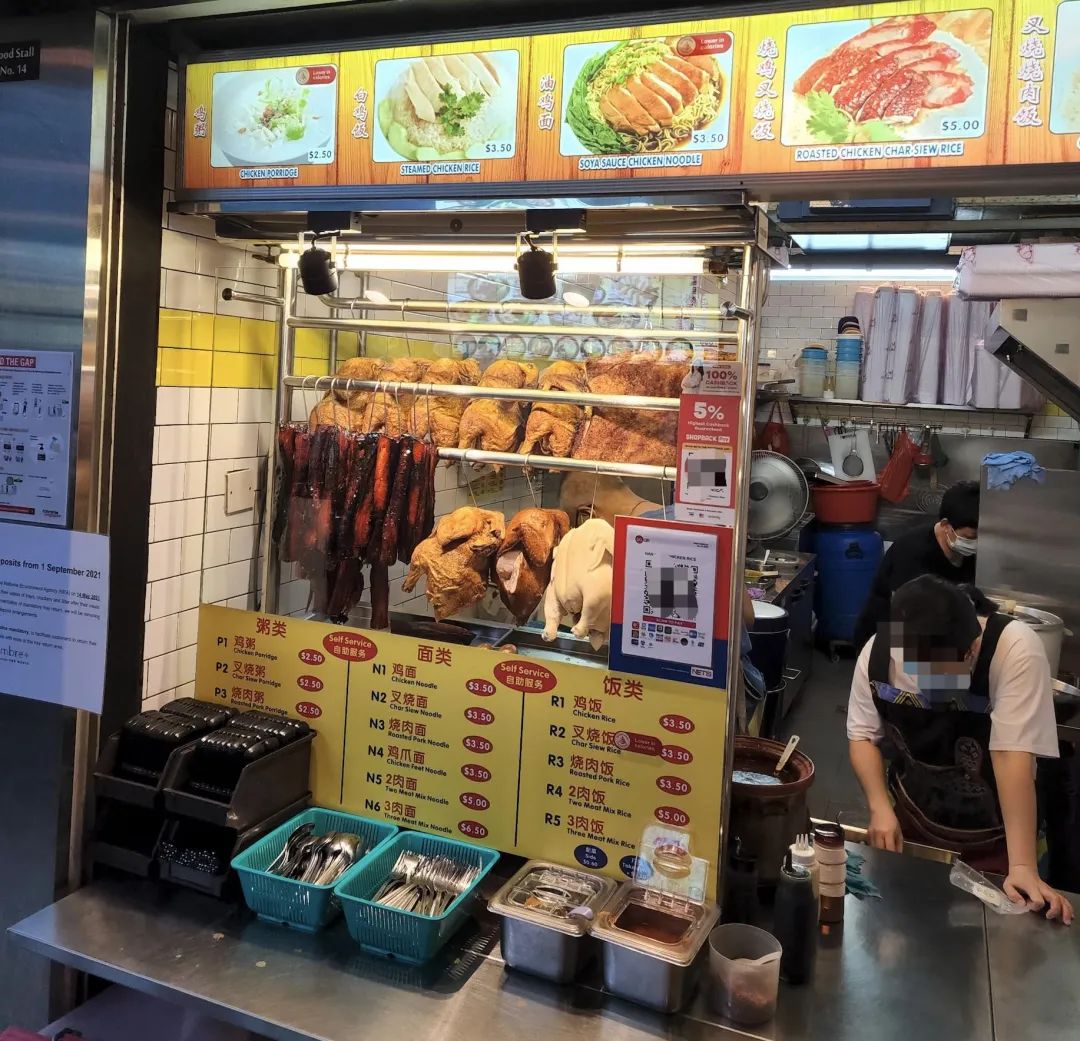以新加坡人对鸡饭的热爱,平时都会排长队买白鸡或烧鸡。↓