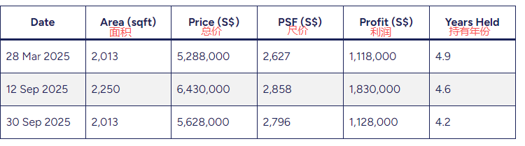时间快进到2025年,Leonie Parc View正在复苏。今年迄今已有四笔转售交易,其中三笔带来了百万新元级别的利润。该项目目前的平均尺价为2719新元,在经历了漫长的18年和数次市场低迷后,实质性地回归了其开盘价格水平。