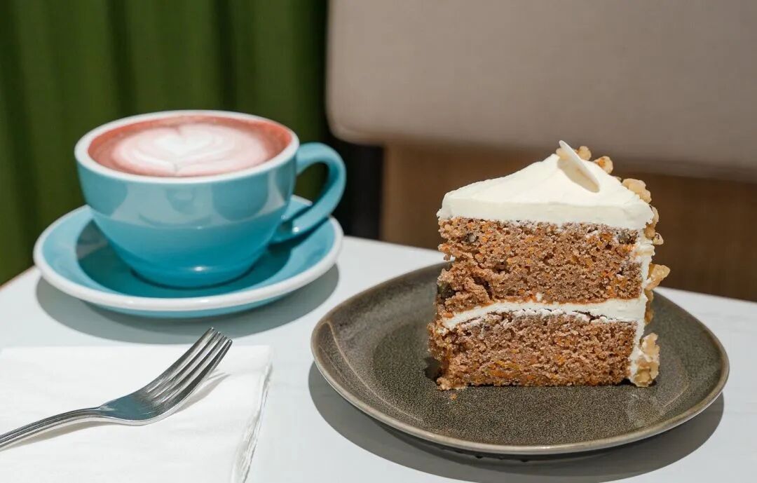 新加坡优质烘焙店 Cedele,各式生日蛋糕琳琅满目。到店选购任意饮品,就能免费领取蛋糕切片,Red Velvet Cake、Carrot Walnut Cake 口感醇厚。