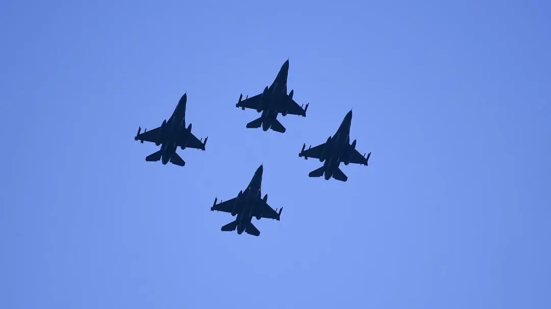随后,四架F-16战斗机将进行高难度钻石转弯动作,彰显国家力量。