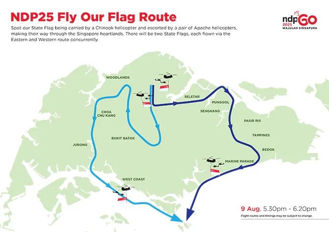 - 2025 年 8 月 9 日新加坡国庆,将有壮观飞行表演。直升机悬挂国旗执行 “升旗” 任务,跨全国分路线至圣淘沙,政府大厦和滨海湾有红狮军团等空中课目。