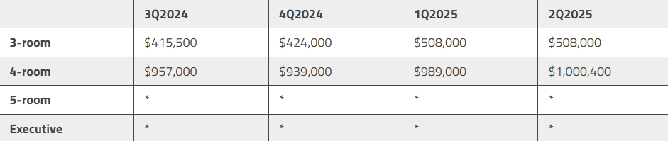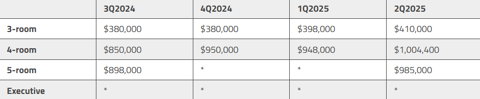 大巴窑过去四个季度的转售中位数价格数据呈现出值得关注的趋势。与三房式及五房式组屋相比,大巴窑四房式组屋转售价格在过去四个季度出现显著增长。这主要得益于比达达利的几个HDB项目——Alkaff Vista、Alkaff LakeView和Alkaff CourtView三个BTO项目相继于2024年末及2025年初达到最低居住年限。