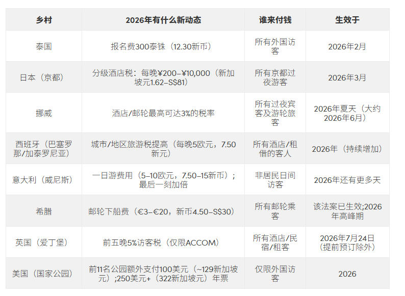 如今多国也在新增或上调旅游税,对新加坡人来说,2026 年去日本、泰国和欧洲度假,成本也会跟着水涨船高。