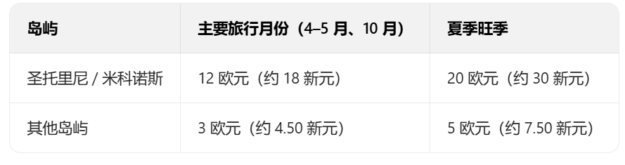 希腊主要岛屿(如圣托里尼、米科诺斯)的邮轮下船费已生效,2026 年旺季将涨价,费用含在船票内,用于管理客流与升级港口等设施,新加坡游客也需承担。