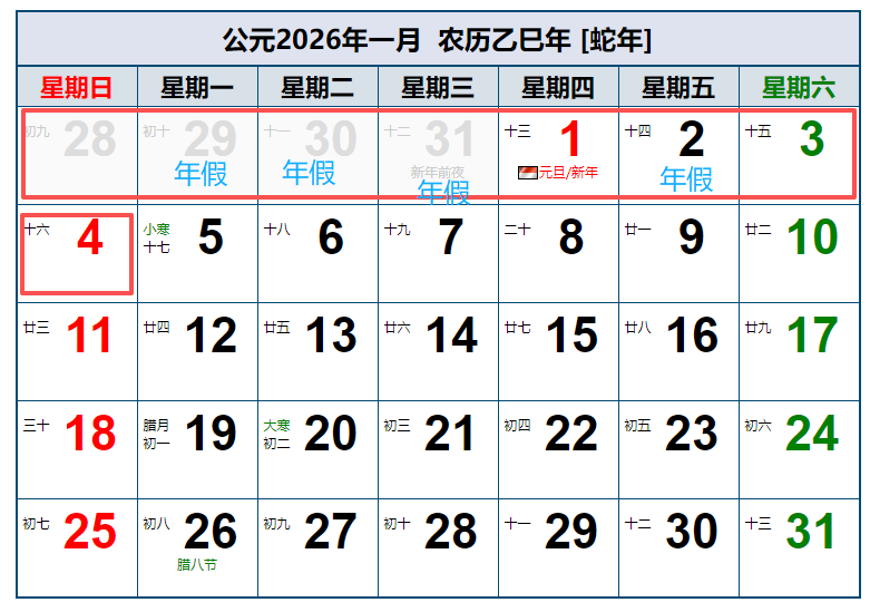 12月25日是星期五,你也可以什么也不做就享受三天假期。但如果年假还有剩,何不在12月21-24日拿上四天年假,让自己好好休息会,给自己的2026年画上一个完美的句号呢?