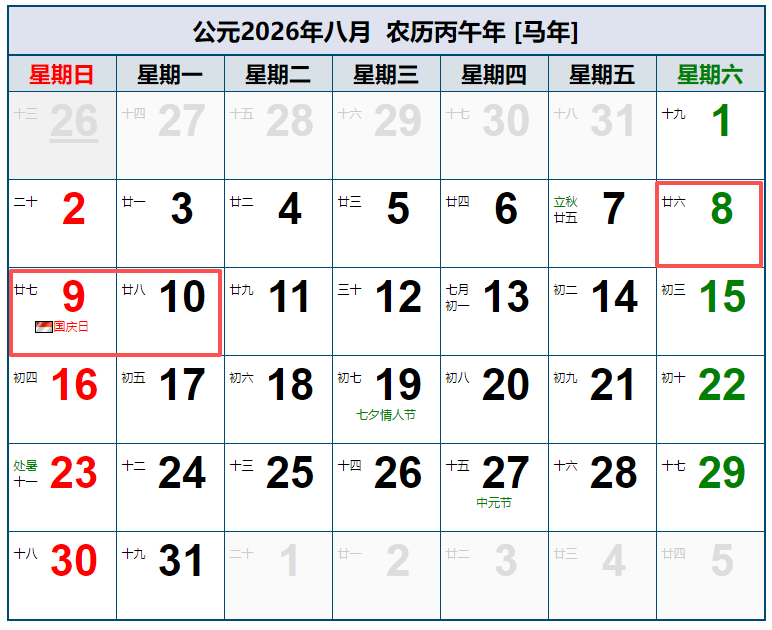 新加坡人力部此前公布了2026年公共假期日期,明年我们能享受11个官方公共假期。