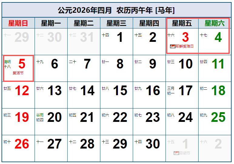 明年4月唯一一个公共假期是4月3日的Good Friday,因为它落在了周五,因此本身就有三天小长假连假了。