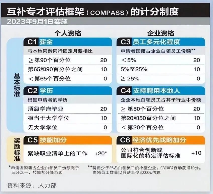 这里也提醒下,从明年2023年9月起,新加坡EP准证批准审核更严格,增设互补专才评估框架COMPASS。