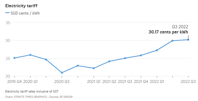 因为燃料成本上涨,新加坡从去年4月以来,电价一直在调高。