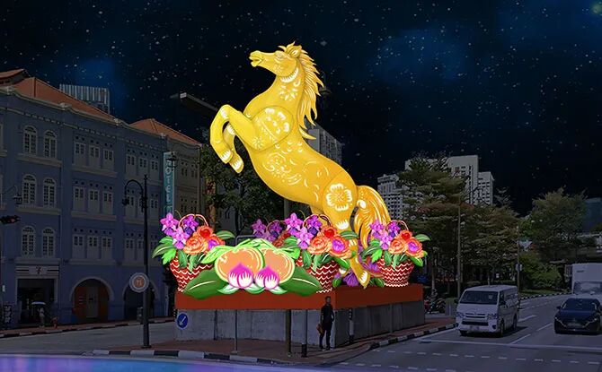 新加坡牛车水新春满是马年巧思,8.8 米金马灯饰立南桥路等街口成视觉核心,伴马主题街灯、文化工坊与多元马舞,剪纸手作重拾传统,年味拉满。